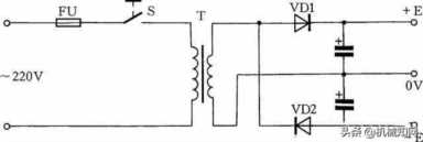 37.单电源变双电源线路在实际工作中,往往用电设备为双电源,并且对称。在手头只有单电源的情况下,按图37所示连接,即可使其变为双对称电源使用。