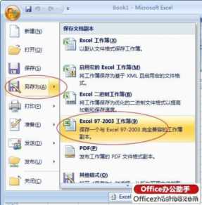 进入Excel 2007以后单击“Office按钮”在弹出的下拉菜单中选择“另存为”,然后选“Excel97-2003工作簿”就可以将xlsx文件保存为xls格式的文件了。