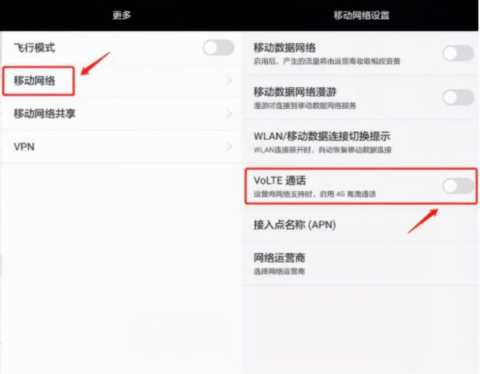 具体操作:打开手机中的【设置】,找到【无线和网络】-【移动网络】-【VoLTE高清通话】,点击右边的按钮,选择打开即可。