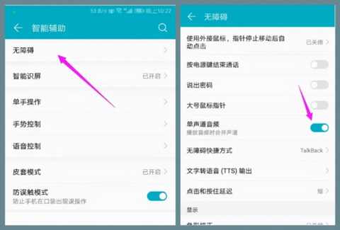 单声道音频是一个辅助功能,可以帮助解决某些音频不分左右声道造成的声音困扰,让左右声道发出同样的声音。