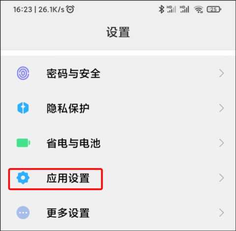 打开手机进入设置,然后找到“应用设置”点击进入。