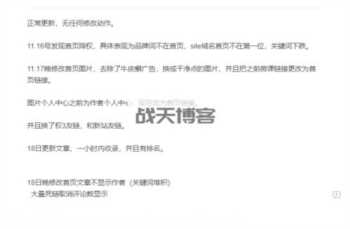我这里目前只是简单的记录,正常情况下记录都是直接新建一个excel文档,把一些详细数据记录进去,以便之后查看,只不过这个网站目前来说一直没有什么大的异常情况,所以也没建excel文档,只是简单的用云文档把修改日期和修改内容记录下来,以便之后查看,积累经验。
