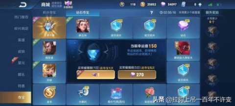 钻石夺宝可以抽取很多比较有用的东西,甚至英雄。关键是在满夺宝次数之后,还可以获得一个王者水晶,在王者水晶商店里可以兑换一些特定的英雄、皮肤以及回城特效等等。