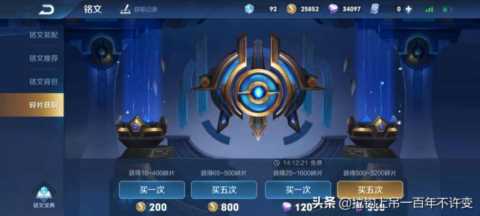 前期快速获得铭文的重要手段,当然前提是你有大量的钻石才行。总体换算下来,大约就是1钻石可以换1铭文的样子。