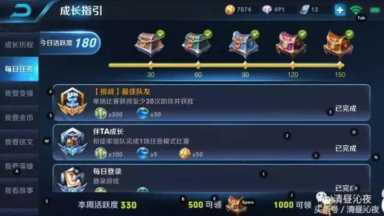 无论怎么样,想要快速积累铭文和金币,这个是必须的。每日必须达到150活跃度,这个还是比较好达到的,只要有一个在一个战队里面的好友,每日组队一次即可,否则会经常卡在130活跃度的。平时不喜欢组队的话,是很难达到每日满活跃的,如果是为了上线刷活跃,可以在上线后,在聊天室寻找队友,三次人机。