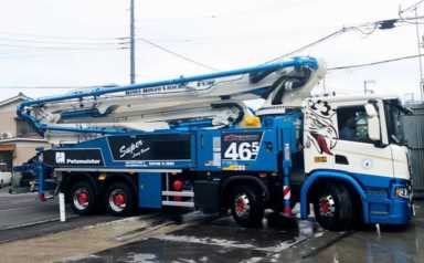 大象46米泵车,韩国的涂装一向很惊人!经典白加上深空蓝,走在路上绝对是最靓的崽!