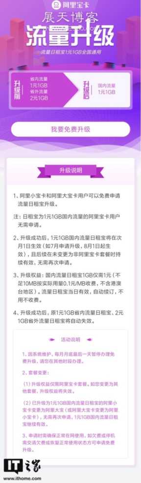 现在,阿里宝卡已经无条件开启了上述福利活动——日租宝“省内流量1元1GB、省外流量2元1GB”免费升级为国内流量1元1GB。