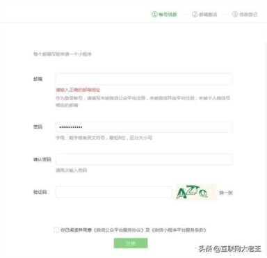 2、填写小程序账号信息,包括邮箱、密码等,填好后,点击下方“注册”。