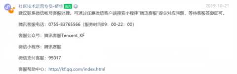 7、被永久封停的帐号,建议拨打腾讯的客服电话,或用其他微信搜索小程序”腾讯客服“提交对应问题,进行申诉。