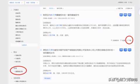 第四步:搜索出来后,点击想要了解的裁判文书即可了解案件全貌,文书可下载、打印(蓝色圈处)
