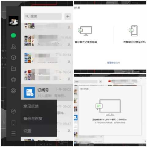 然后点击左下角三图标,选中“备份与恢复”在弹出的窗口选中“备份聊天记录至电脑”