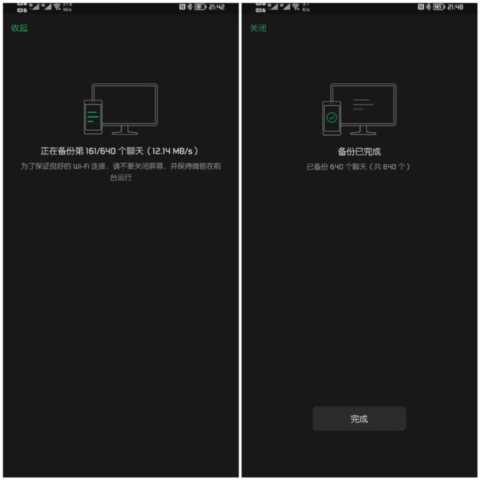 然后就是等待备份完成 备份之时会在手机确认同意备份,之后手机也会显示备份进度!