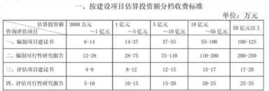投资决策咨询包括编制项目建议书、编制可行性研究报告、评估项目建议书、评估可行性研究报告等,取费可参考《国家计委关于印发建设项目前期工作咨询收费暂行规定的通知》(计价格〔1999〕1283号),该文件提出了投资额在3000万元以上的建设项目前期工作咨询收费标准,而投资额3000万元以下的建设项目由各省自行制定,如湖北省制定了相应的地方标准——《省物价局关于制定估算投资额3000万元以下建设项目前期工作咨询收费标准的通知》(鄂价房服〔2001〕107号),具体收费标准根据估算投资额在收费标准相对应的区间内用插入法计算。