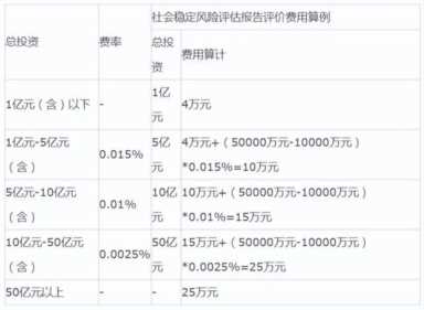 社会稳定风险评估咨询取费可参考地方收费标准,如上海市地方标准——《上海市重点建设项目社会稳定风险评估咨询服务收费暂行标准》(沪发改投〔2012〕130号),以估算总投资额为计费基数,根据建设项目不同的性质、内容和所处区域,采取按估算投资额分档定额计费。