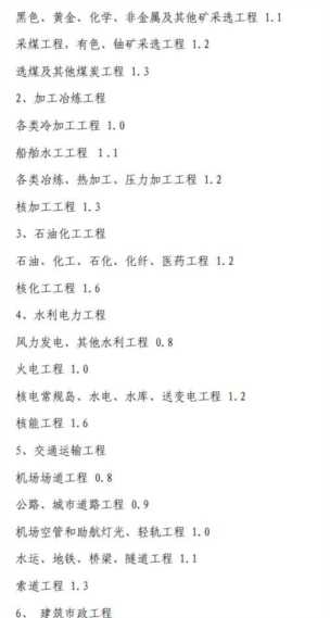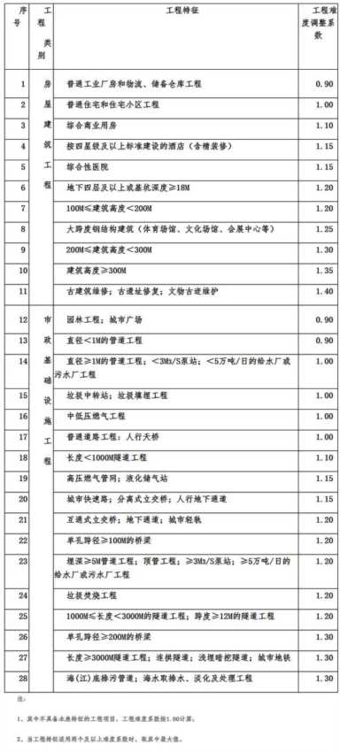 工程复杂程度分为一般、较复杂和复杂三个**,其调整系数分别为:一般(Ⅰ级)0.85;较复杂(Ⅱ级)1.0;复杂(Ⅲ级)1.15。