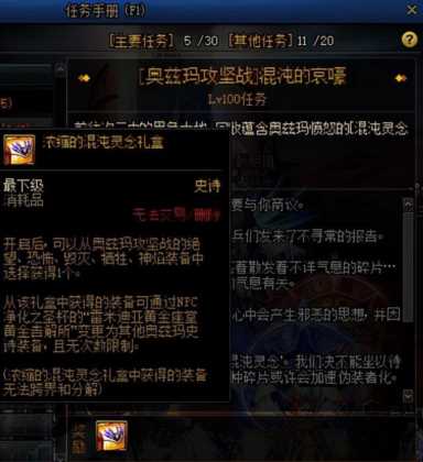 Tips:完成任务可分别获得一个希洛克装备和奥兹玛装备的自选礼盒。