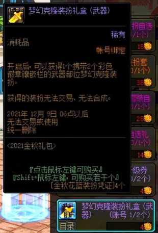 金秋礼包提升包含2个附魔宝珠、光环、可镶嵌武器装扮、可镶嵌皮肤装扮以及8件高级装扮和称号。