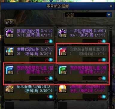 宠物装备可使用周常地下城的宠物装备进行过渡。