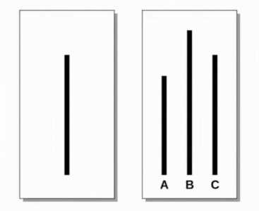 看起来很简单吧?实验者设置了一个陷阱,故意让6个托儿给出一致但错误的答案。