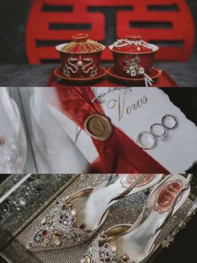 新娘服饰:晨袍+秀禾+主纱+敬酒服+婚鞋+平底鞋等…..买好服饰约试妆更容易看到整体效果,配饰方面也更容易搭配。
