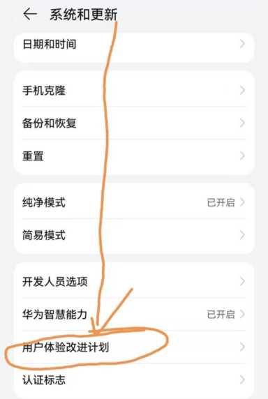 2、第二个也是点击系统和更新往下面翻,找到用户体验改进计划,好,把这个加入用户体验改进计划这个开关也给它关闭掉。