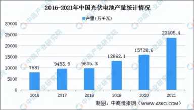 近年来,随着我国光伏产业的发展壮大,光伏电池的产量也不断增加。数据显示,我国光伏电池产量由2016年7681.0万千瓦增至2020年15728.6万千瓦。2021年,我国光伏电池产量达23405.4万千瓦,同比增长42.1%。