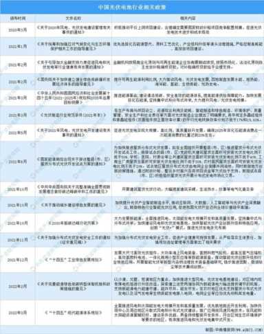 产业政策和相关行业标准的鼓励和引导是光伏电池行业发展的重要推力。我国出台了一系列产业政策不断推动行业有序、健康发展,不断推进行业技术创新。为加快实现“双碳”目标,预计后期将出台相关政策,推动光伏电池产业发展。