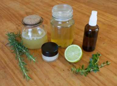 1 / 4杯蒸馏水1 / 4杯液体橄榄皂-柠檬试试!2汤匙干迷迭香2汤匙甜杏仁油1 汤匙柠檬精油