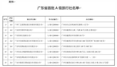 (原标题《广东首批127家A级旅行社名单公布!深圳有4家获评4A》)