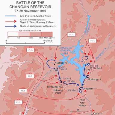 1950年11月27日,中国志愿军九兵团在长津湖地区突袭了由爱德华·阿尔蒙德少将指挥的美军第十军。11月27日至12月13日,奥利弗·P·史密斯少将指挥下的陆战一师遭到12万志愿军部队的包围和攻击。美军部队在付出惨重伤亡后冲出包围圈,一路撤退至兴南港。**海军陆战队部队的撤离得到了美军“费斯”特遣部队即第31团级战斗队的支持,该部遭遇了志愿军的全面进攻,遭受了重大伤亡,几乎全军覆没。