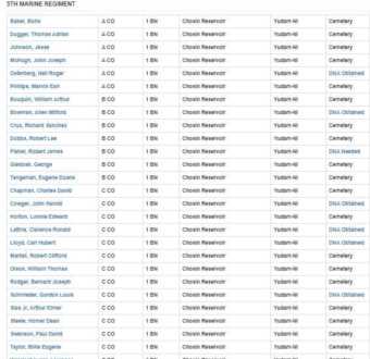 koreanwar.org (Korean War Projec)列出的海陆1师第5团1950年11月28日阵亡人员名单