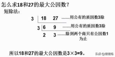 几个数公有的因数叫这些数的公因数。其中最大的那个因数就叫它们的最大公因数。用短除法分解质因数 (一个合数写成几个质数相乘的形式)例:12=2×2×3