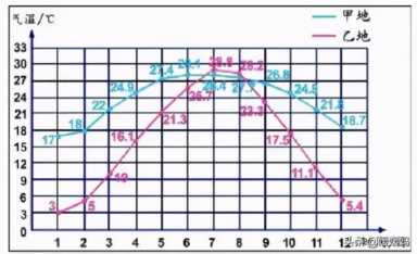 乙地一年气温变化趋势较平稳,7月份温度最高。