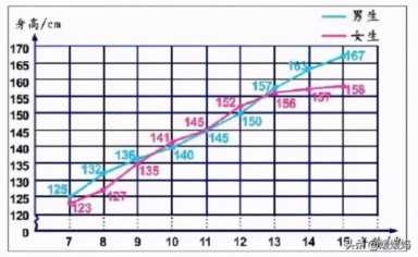 答:男、女生的平均身高都随着年龄增加面增高,但是女生13岁后的增长趋于平缓,增长速度要比男生的速度慢。