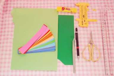 材料:绿色卡纸,少量彩色卡纸备用、剪刀、圆规、胶水、铅笔、镊子、尺子。