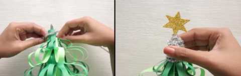 第9步:粘好星星后,圣诞树就完成了。重复以上步骤最多一两个小的,组合后是很漂亮的圣诞小摆件。
