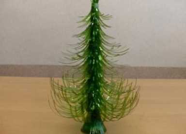 材料和工具:两色彩纸(深绿和浅绿)、扭棒、闪卡纸、钉书机、白乳胶、剪刀