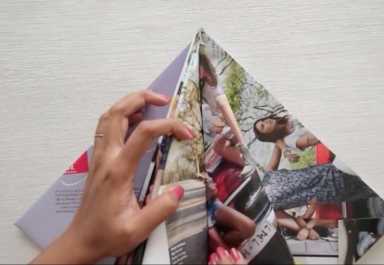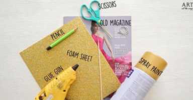 材料和工具:杂志、喷漆、热熔胶、珠链、闪卡纸、剪刀